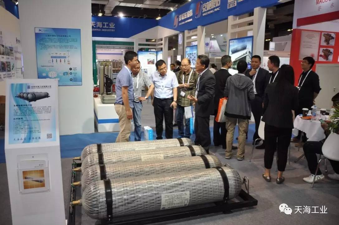 天海工业于本次展会展出了最新研制的用于氢燃料电池汽车的车载供氢系统、具有国际领先技术水平的高压轻质无缝气瓶、铝内胆碳纤维全缠绕复合气瓶(呼吸器用气瓶)、智能气瓶以及焊接绝热气瓶。展会现场气氛火爆,来参观咨询的客户络绎不绝,好评不断。